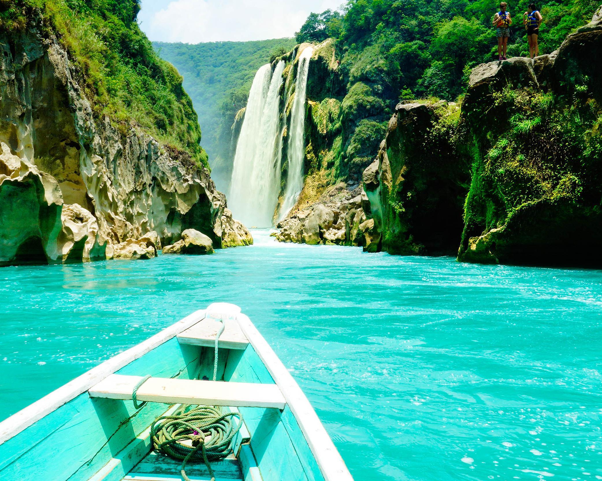 VISITAMOS: LAGUNA MEDIA LUNA, PUENTE DE DIOS, CASCADA TAMUL Y CUEVA DEL AGUA, CASCADA TAMASOPO, CASCADA MICOS, JARDIN SURREALISTA DE SIR EDWARD JAMES Y MAS…
